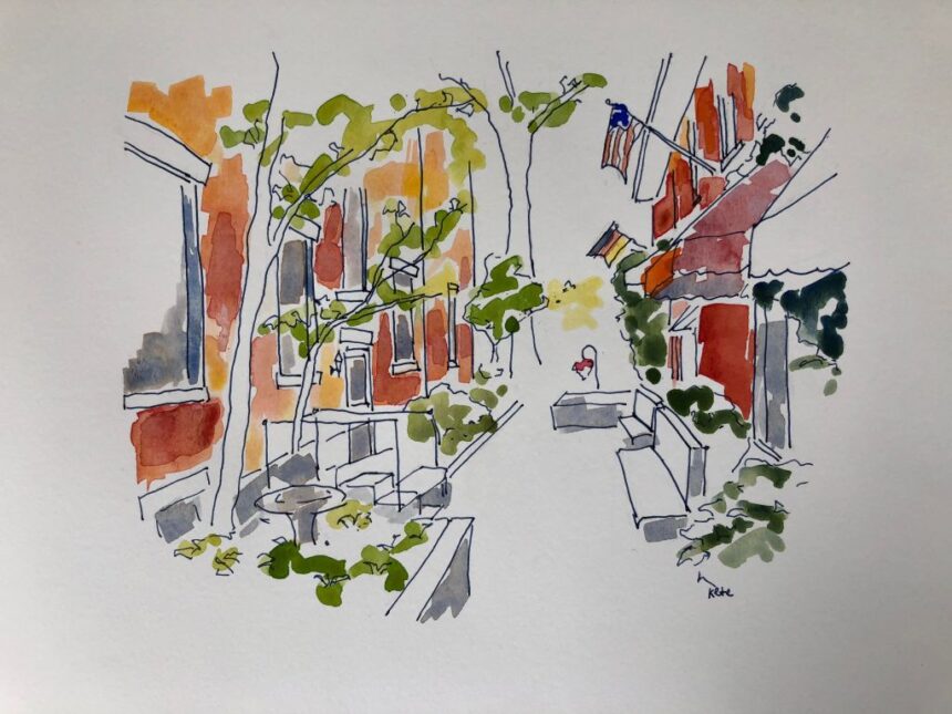 Ink and watercolor, 12 x 16,