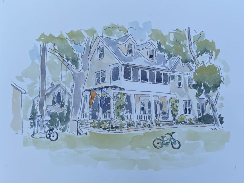 Yellow House with Bikes Commission